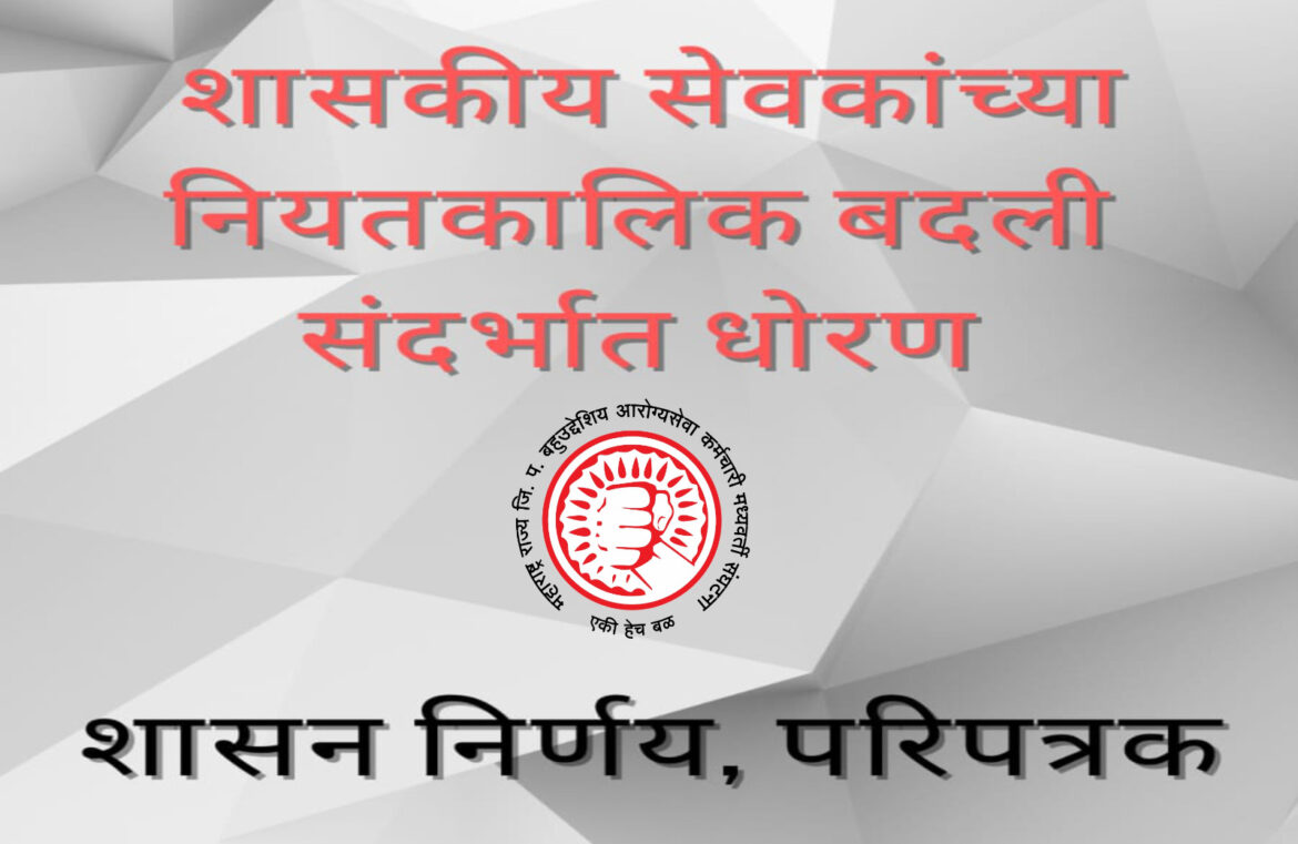 शासकिय कर्मचा ऱ्याच्या नियतकालिक बदल्या संदर्भात धोरण साप्रवि शा परिपत्रक क्र- टीआरएफ-२००५/प्रक्र ०२/०५/१२ दि २९/०४/२००६
