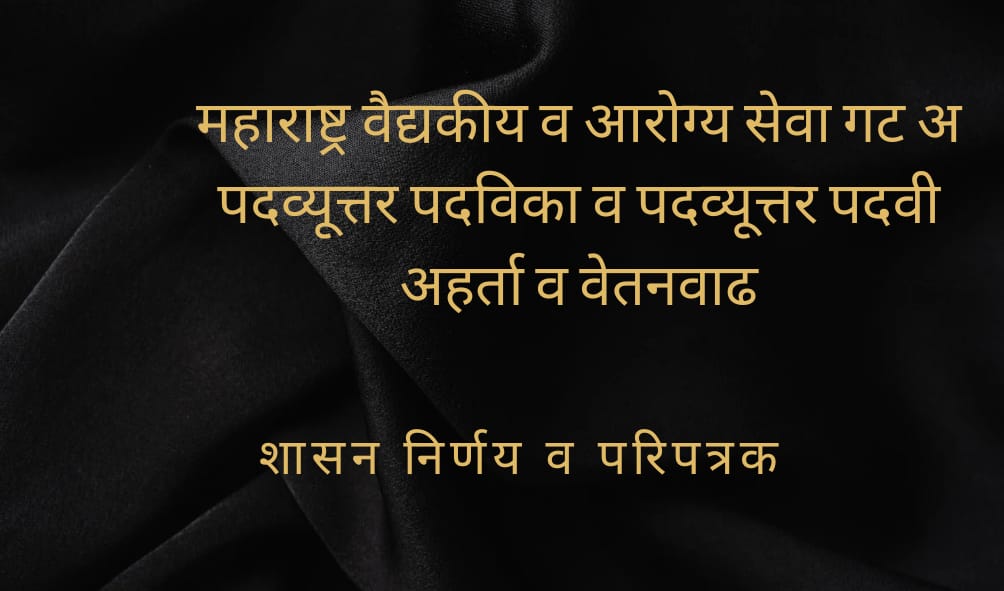 महाराष्ट्र वैद्यकीय व आरोग्य सेवा गट अ या संवर्गातील वैद्यकीय अधिकारी पदावरील पदव्यूत्तर पदविका व पदव्यूत्तर पदवी अहर्ता धारकास विशेष वेतनवाढी मंजूर करण्याबाबत सार्वजनिक आरोग्य विभाग, शासन निर्णय दिनां १९-११-२०१२