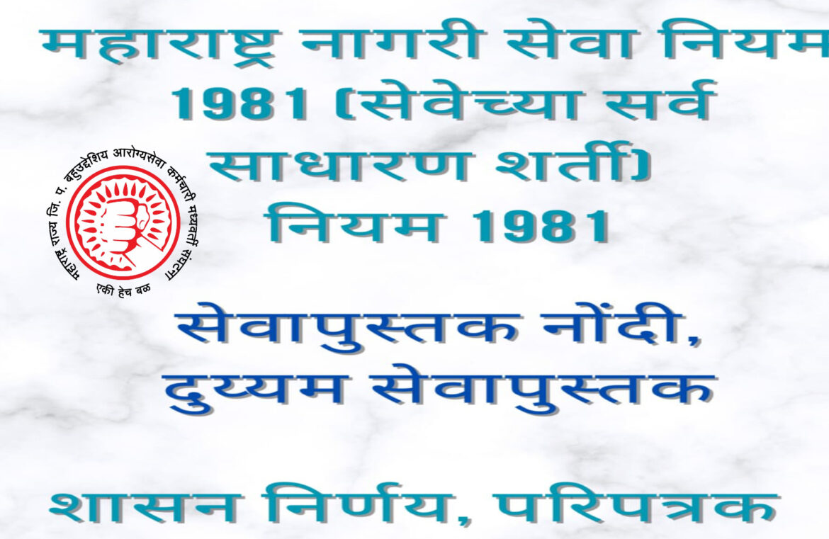 महाराष्ट्र नागरी सेवा नियम 1981 (सेवेच्या सर्व साधारण अटी) मधील नियम 36 परिशिष्ट -4 नुसार Service Book नमुना विहित करण्यात आला आहे.